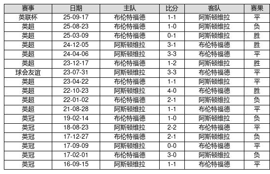 阿斯顿维拉 VS 布伦特福德两队近10年的交战次数为17场,阿斯顿维拉4胜8平5负,赢球概率为23.5%,平局概率为47.1%,输球概率为29.4%。