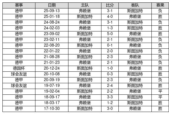 斯图加特 VS 弗赖堡两队近10年的交战次数为18场,斯图加特8胜2平8负,赢球概率为44.4%,平局概率为11.1%,输球概率为44.4%。