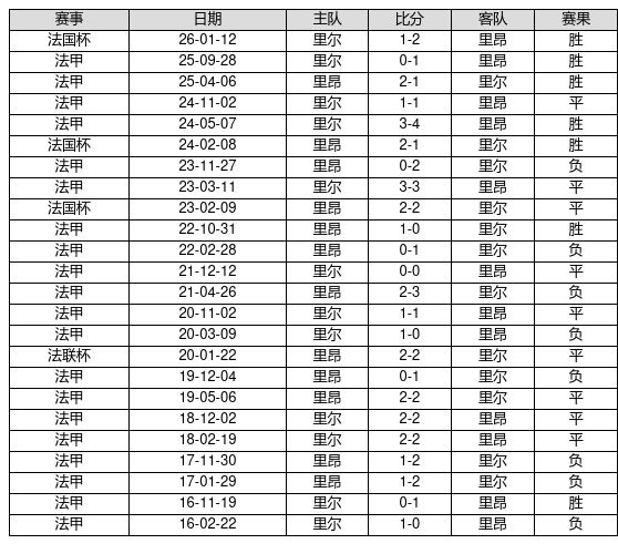 里昂 VS 里尔两队近10年的交战次数为24场,里昂7胜9平8负,赢球概率为29.2%,平局概率为37.5%,输球概率为33.3%。