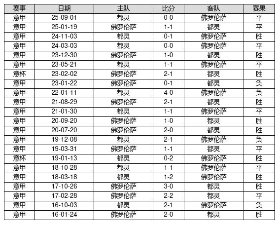 佛罗伦萨 VS 都灵两队近10年的交战次数为22场,佛罗伦萨10胜8平4负,赢球概率为45.5%,平局概率为36.4%,输球概率为18.2%。
