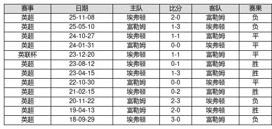 富勒姆 VS 埃弗顿两队近10年的交战次数为12场,富勒姆4胜4平4负,赢球概率为33.3%,平局概率为33.3%,输球概率为33.3%。