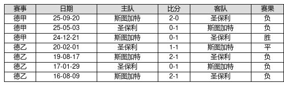 圣保利 VS 斯图加特两队近10年的交战次数为7场,圣保利1胜1平5负,赢球概率为14.3%,平局概率为14.3%,输球概率为71.4%。