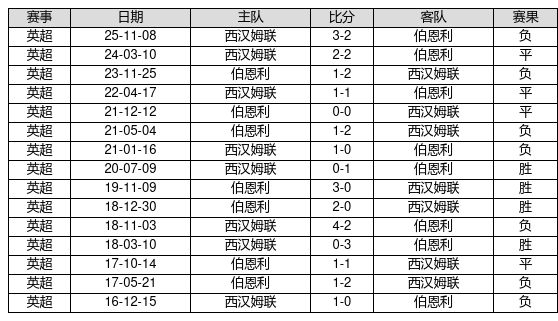 伯恩利 VS 西汉姆联两队近10年的交战次数为15场,伯恩利4胜4平7负,赢球概率为26.7%,平局概率为26.7%,输球概率为46.7%。