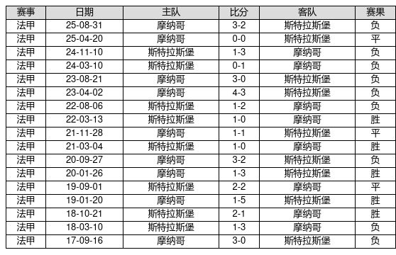 斯特拉斯堡 VS 摩纳哥两队近10年的交战次数为17场,斯特拉斯堡5胜3平9负,赢球概率为29.4%,平局概率为17.6%,输球概率为52.9%。