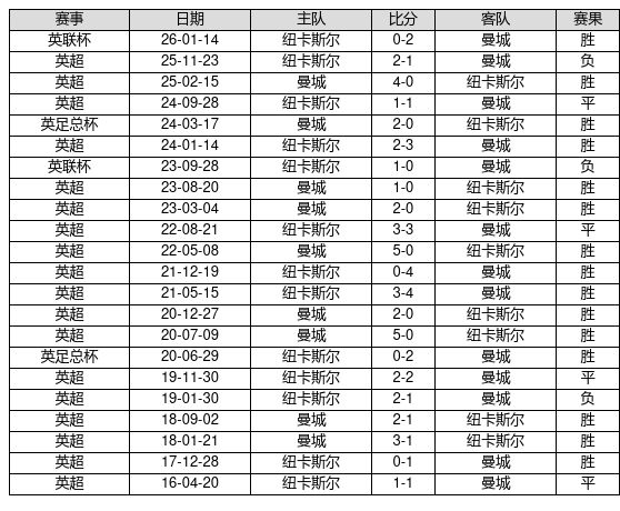 曼城 VS 纽卡斯尔两队近10年的交战次数为22场,曼城15胜4平3负,赢球概率为68.2%,平局概率为18.2%,输球概率为13.6%。