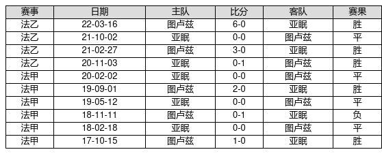 图卢兹 VS 亚眠两队近10年的交战次数为10场,图卢兹5胜4平1负,赢球概率为50.0%,平局概率为40.0%,输球概率为10.0%。